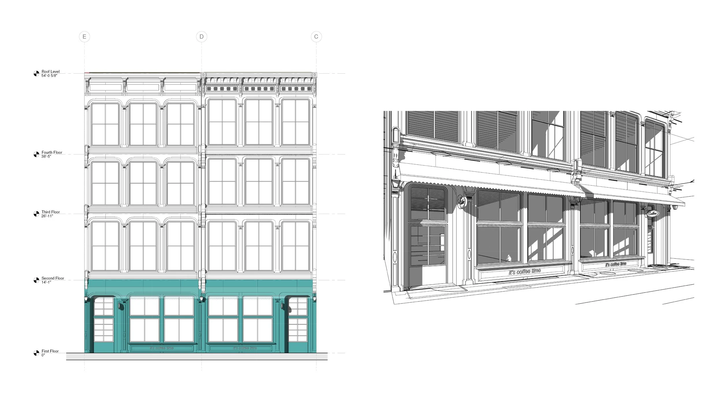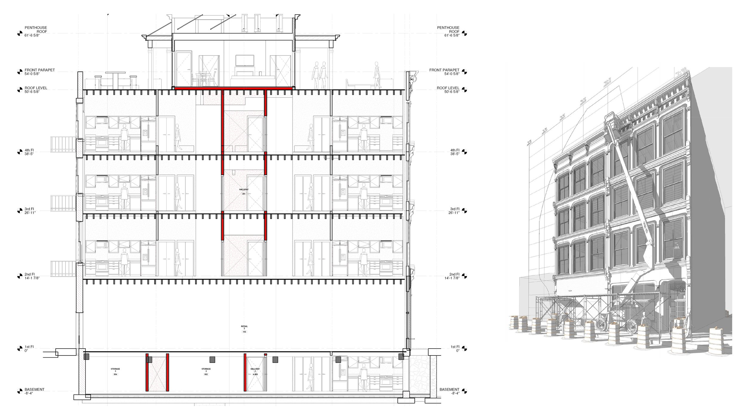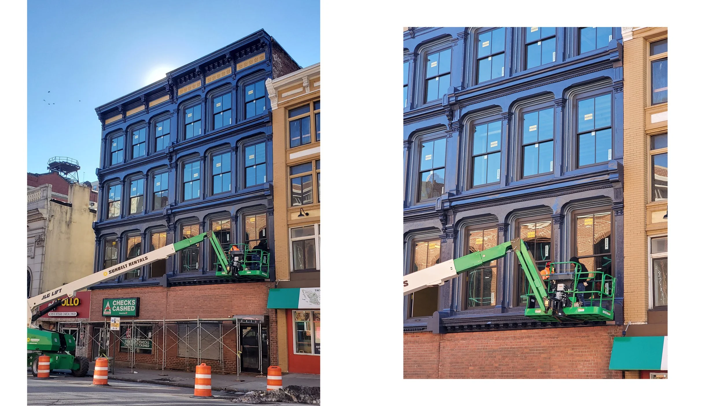 A historic cast-iron facade in the heart of downtown Baltimore was in need of restoration, as one of the few remaining examples in the region. Also developed were plans to convert both buildings into residential units, working with the owners to bring much needed housing for the neighborhood.